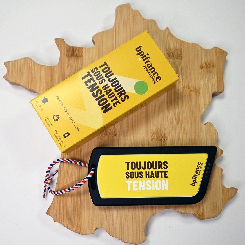 Distribuez des goodies pratiques et mémorables lors de vos événements. La batterie externe personnalisée devient un outil de communication durable.