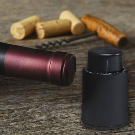 Bouchon pour bouteille Stop Bulles en ABS noir, conçu pour préserver la fraîcheur du vin en limitant l’oxydation. Son système rotatif de verrouillage et déverrouillage assure une étanchéité parfaite et un usage facile. Idéal à la maison, dans les hôtels ou les bars. Personnalisable en impression numérique quadri ou tampographie 1 couleur, disponible également sans personnalisation.