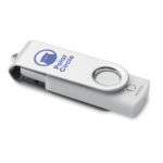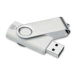Simple d’utilisation, cette clé USB s’active immédiatement après connexion au port USB d’un ordinateur. Son couvercle rotatif en métal protège efficacement la tête de connexion, tout en facilitant l’accès d’un simple geste. Avec une capacité de 16 Go, elle permet de stocker aisément documents, présentations, photos ou supports de formation. Sa solidité et son mécanisme pivotant en font un outil durable qui saura accompagner vos collaborateurs sur la durée.