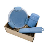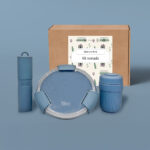 Coffret 100% Nomade composé de produits de la marque Bini : un set de couverts nomades, une lunch box nomade et un mug nomade coloré fabriqué en France, chaque article personnalisable par gravure laser. Un coffret cadeau entreprise pratique et durable, idéal en welcome pack d’entreprise ou coffret Bini personnalisé pour les collaborateurs en mobilité.