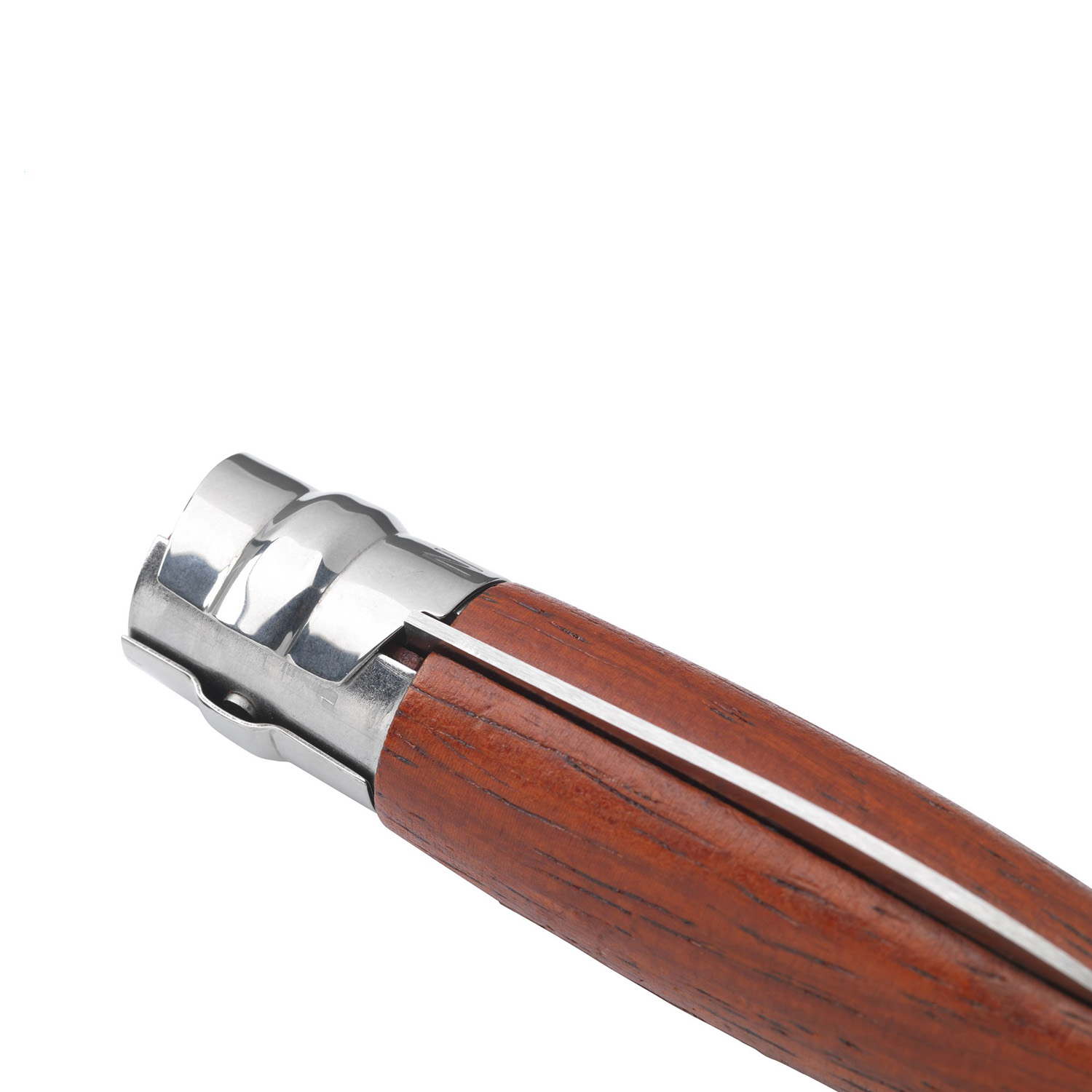La personnalisation est possible par tampographie (1 couleur) sur le manche, avec une zone de marquage de 45 x 12 mm. Fabriqué en France, ce couteau reflète le savoir-faire artisanal et la qualité des matériaux durables.