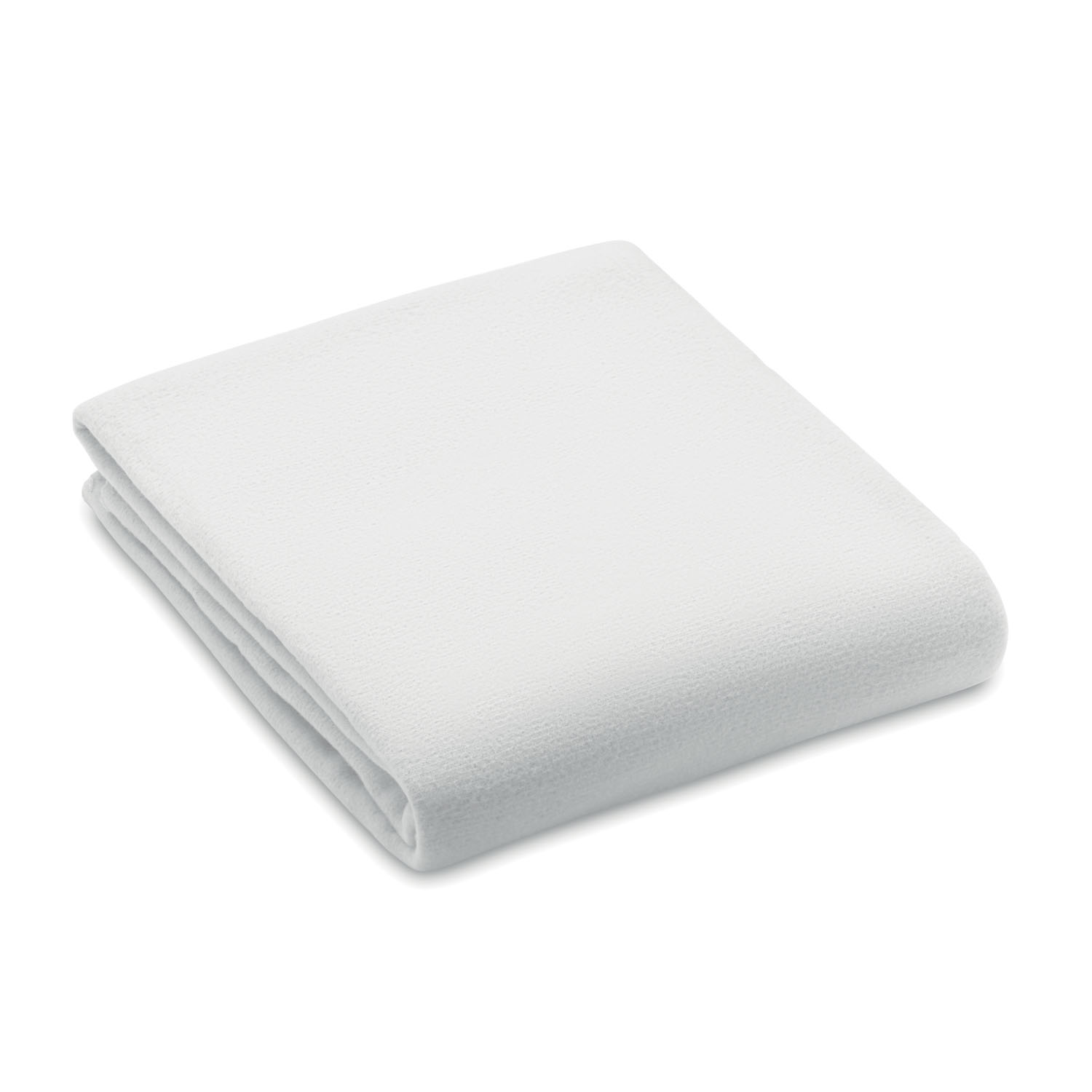 Sa matière en RPET permet de proposer un objet promotionnel moderne, perçu comme plus respectueux de l’environnement, tout en restant accessible et simple à distribuer. La couverture peut être utilisée au quotidien, ce qui renforce la visibilité de votre logo à long terme.