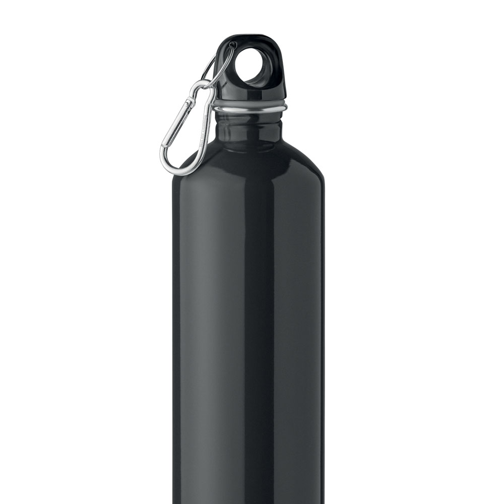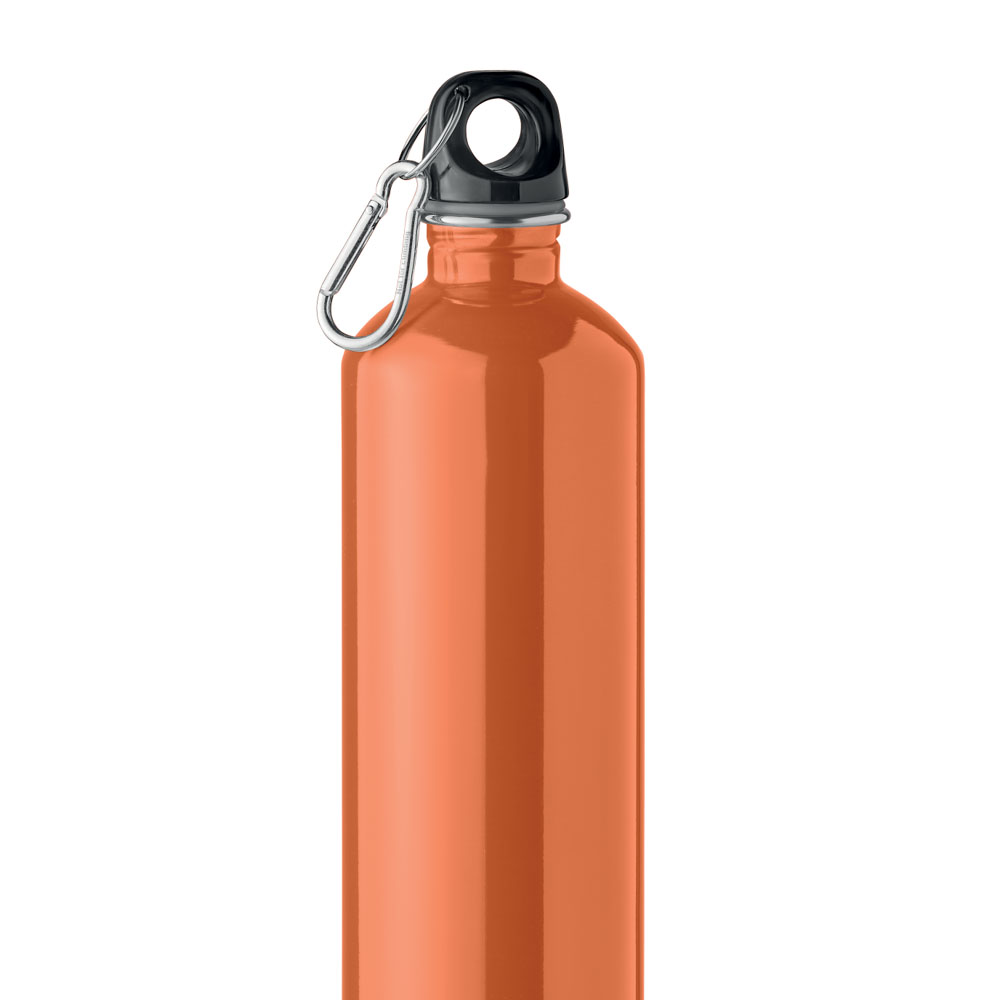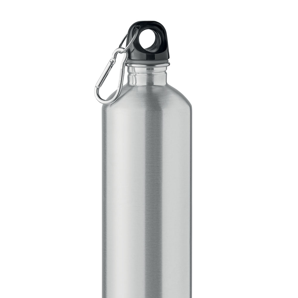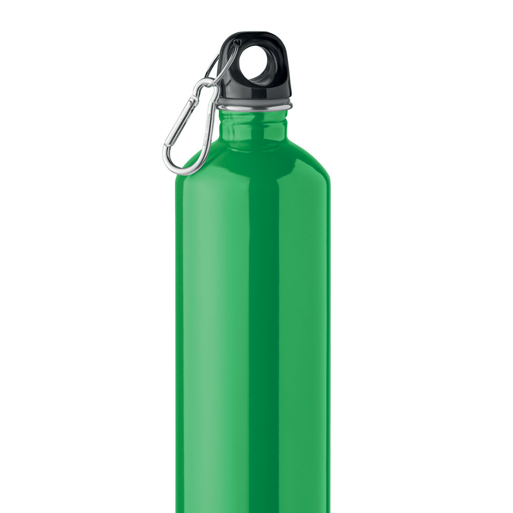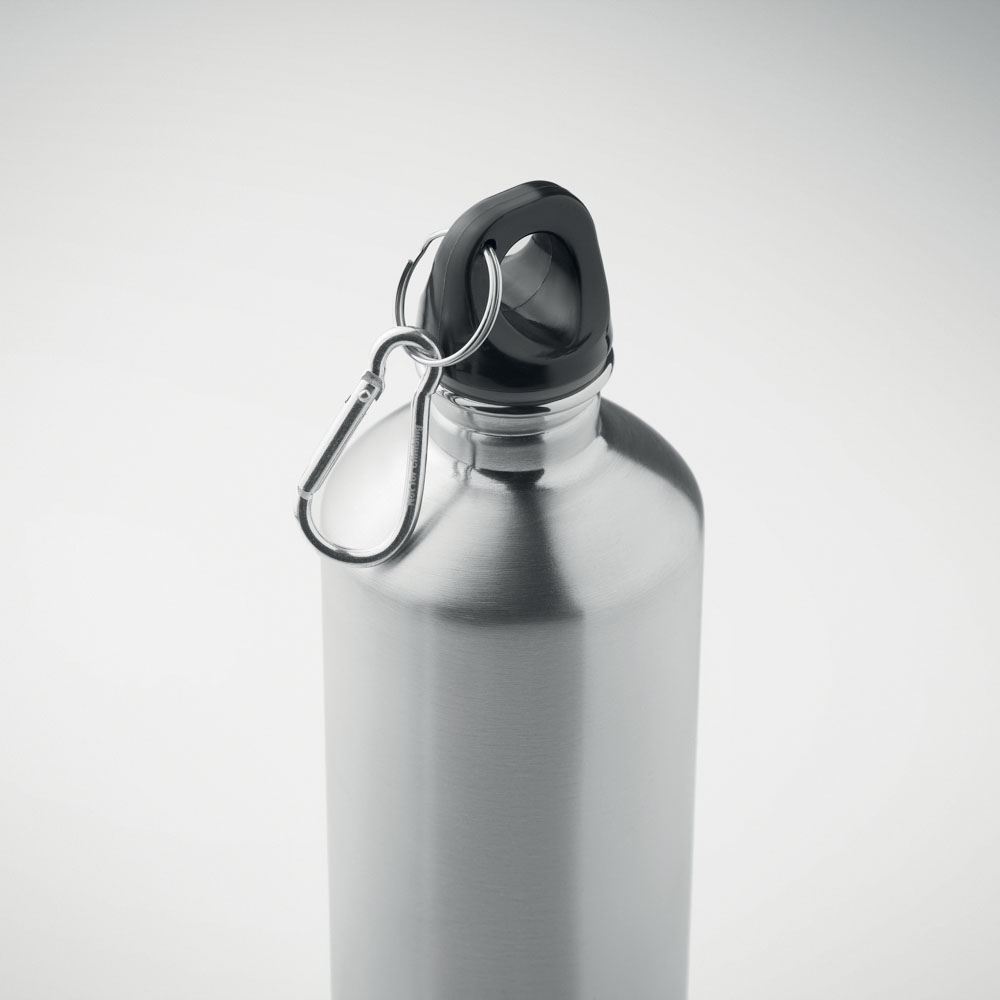 Gourde à simple paroi en acier inoxydable recyclé (90 % recyclé, 10 % acier inoxydable) avec mousqueton, étanche et compatible lave-vaisselle, contenance 750 ml / 75 cl, dimensions 6,5 x 6,5 x 25 cm, poids 132 g. Parfaite comme gourde écologique personnalisable avec gravure laser, gravure laser 360°, impression numérique 360° (quadri), sérigraphie circulaire (1 couleur) ou en version sans personnalisation, avec zones de marquage dédiées pour votre logo.