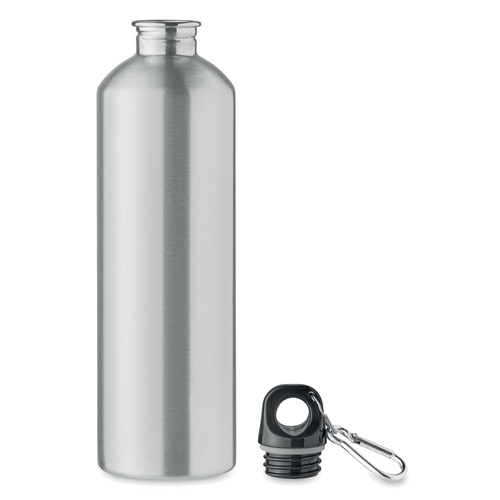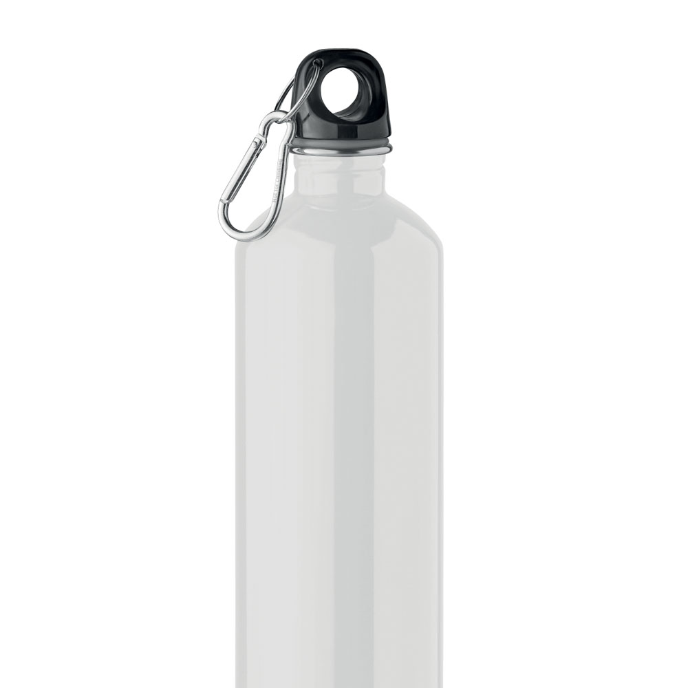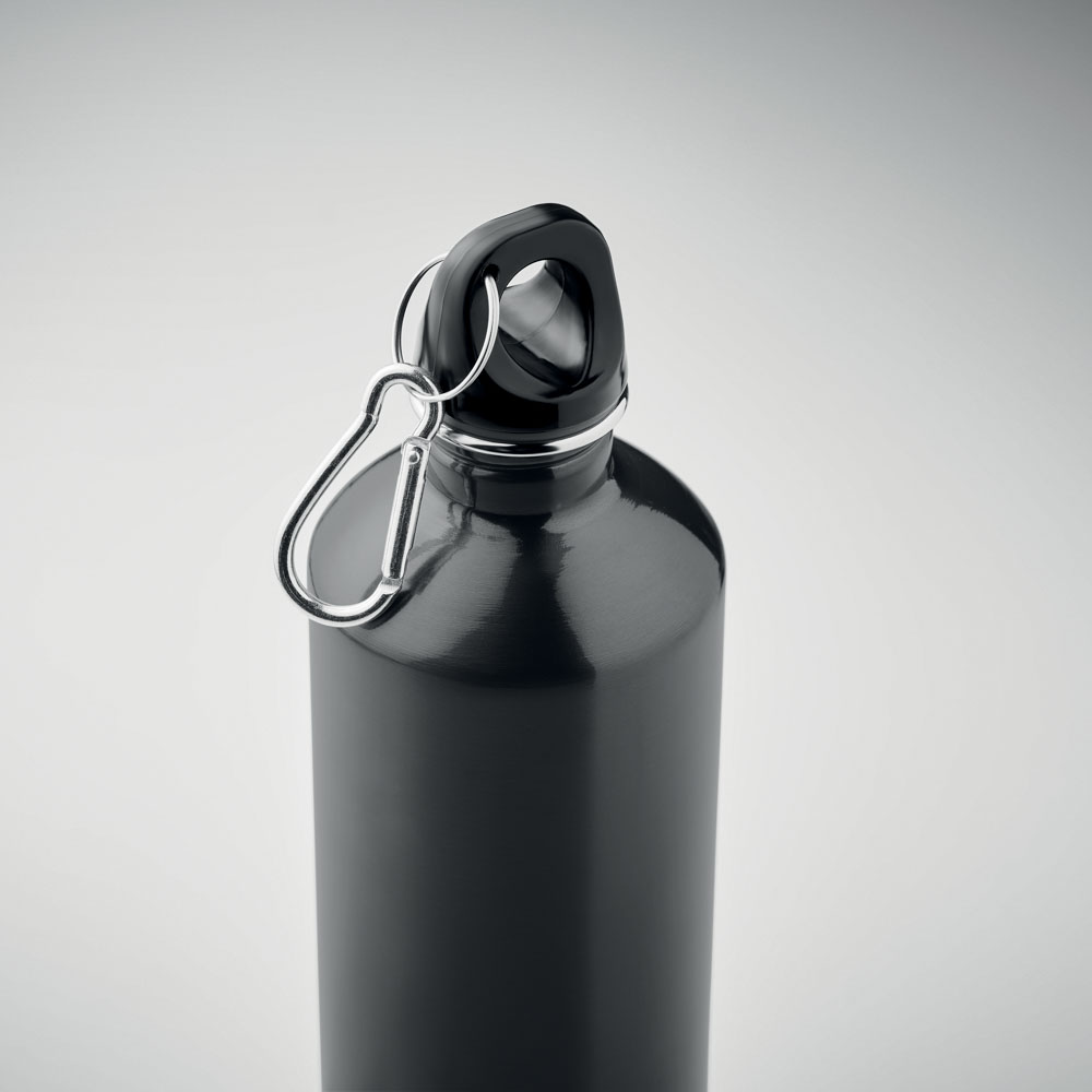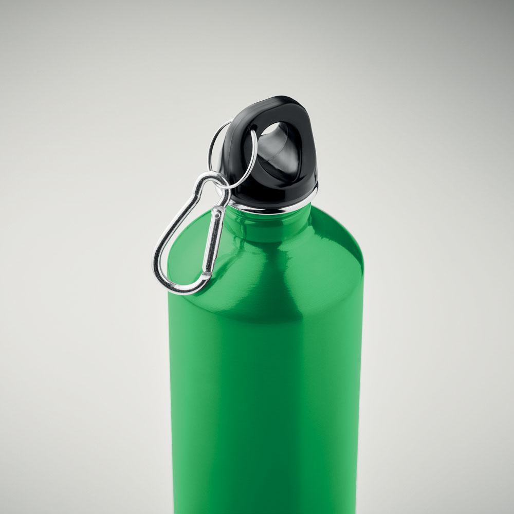 Gourde à simple paroi en acier inoxydable recyclé (90 % recyclé, 10 % acier inoxydable) avec mousqueton, étanche et compatible lave-vaisselle, contenance 750 ml / 75 cl, dimensions 6,5 x 6,5 x 25 cm, poids 132 g. Parfaite comme gourde écologique personnalisable avec gravure laser, gravure laser 360°, impression numérique 360° (quadri), sérigraphie circulaire (1 couleur) ou en version sans personnalisation, avec zones de marquage dédiées pour votre logo.