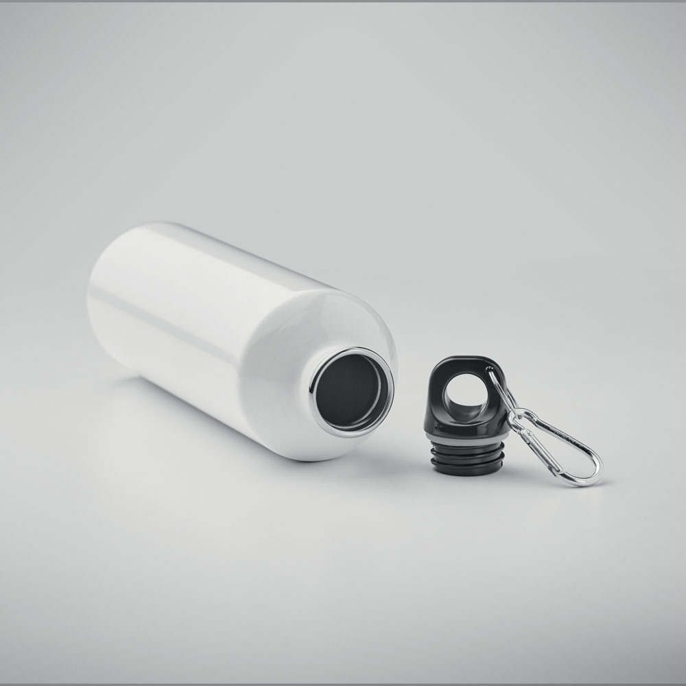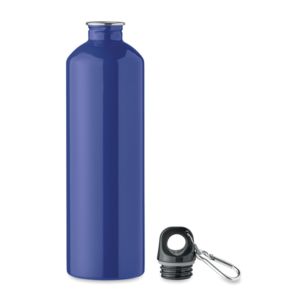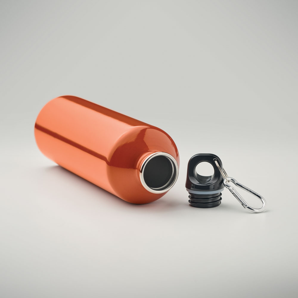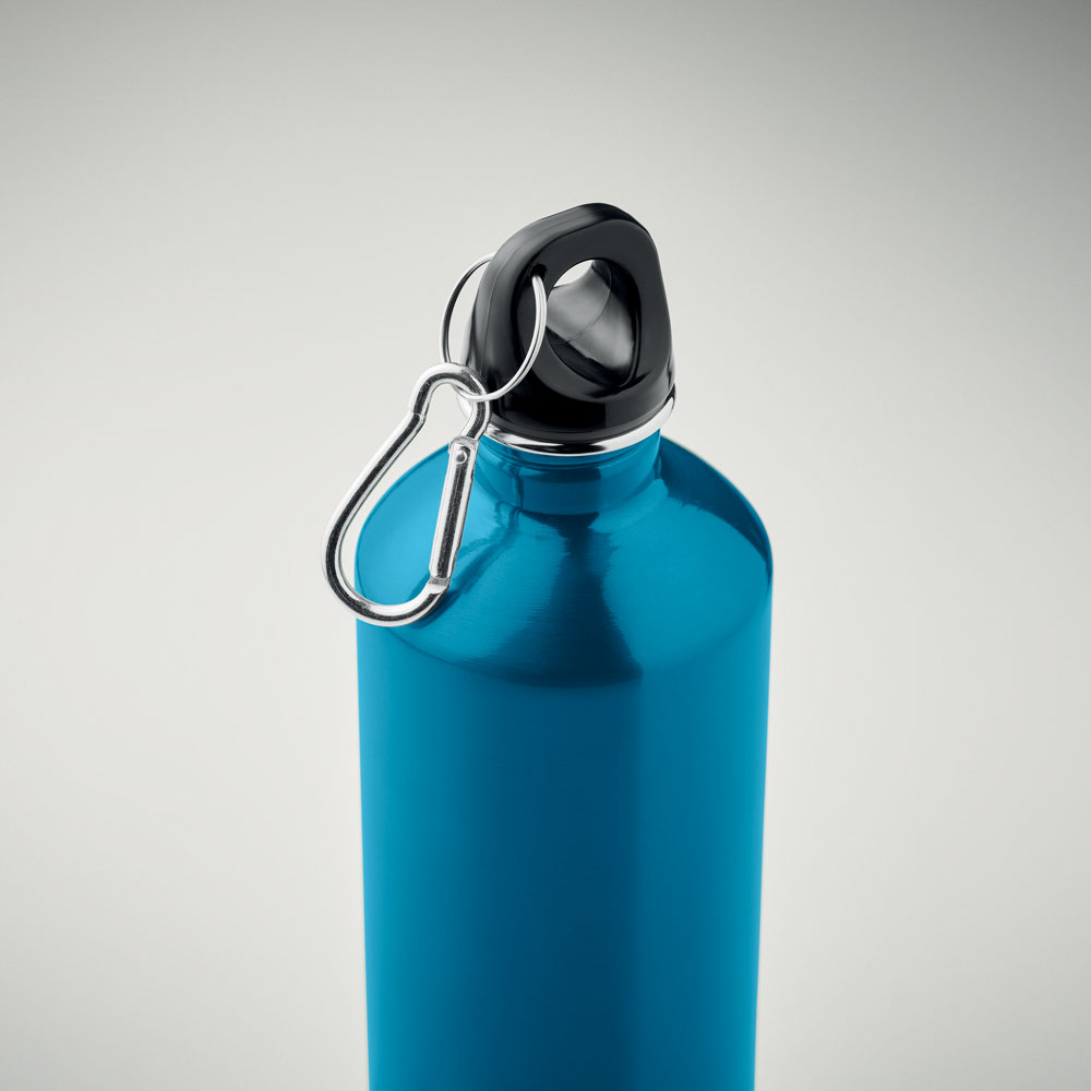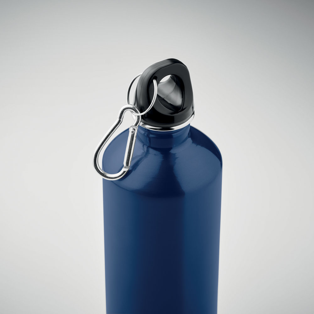 Gourde à simple paroi en acier inoxydable recyclé (90 % recyclé, 10 % acier inoxydable) avec mousqueton, étanche et compatible lave-vaisselle, contenance 750 ml / 75 cl, dimensions 6,5 x 6,5 x 25 cm, poids 132 g. Parfaite comme gourde écologique personnalisable avec gravure laser, gravure laser 360°, impression numérique 360° (quadri), sérigraphie circulaire (1 couleur) ou en version sans personnalisation, avec zones de marquage dédiées pour votre logo.