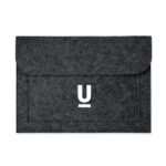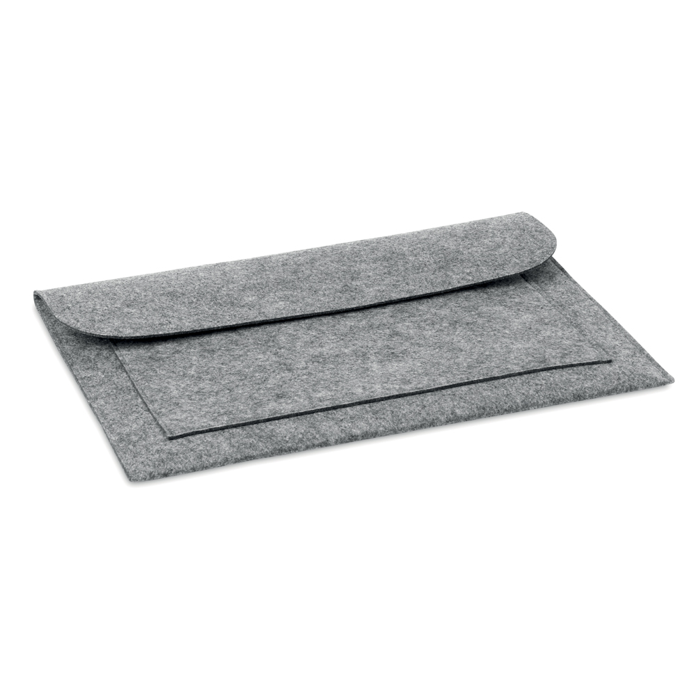 Housse PC portable en RPET. Dimensions : 37 x 26 cm. Poids : 120 g. Personnalisation : sérigraphie (1-4 couleurs), transfert numérique (quadri). Zone de marquage : 250 x 90 mm. Matière : PET recyclé. Couleur : gris foncé, gris. Origine : Hors-Europe.