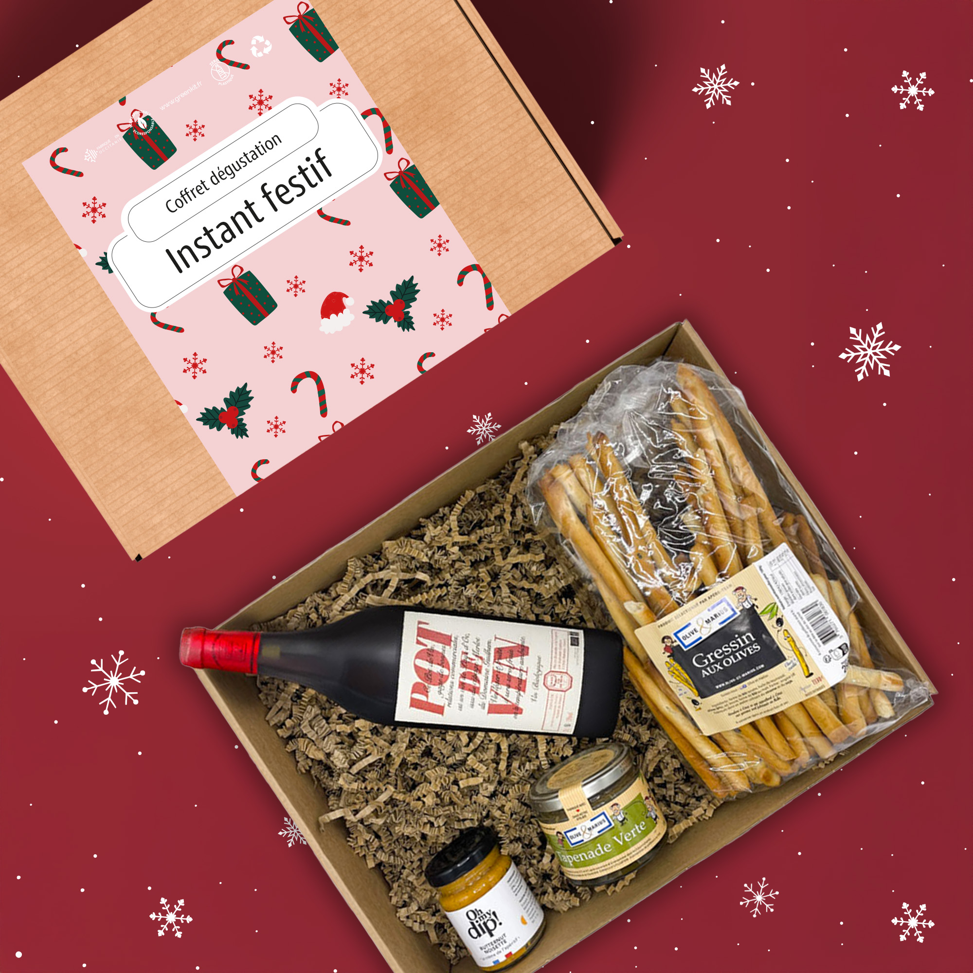 Parce que les fêtes sont faites pour se retrouver et savourer de bons moments, notre Coffret Instant Festif a été pensé comme une véritable invitation au partage. Tout y est pour composer un apéritif raffiné et chaleureux :