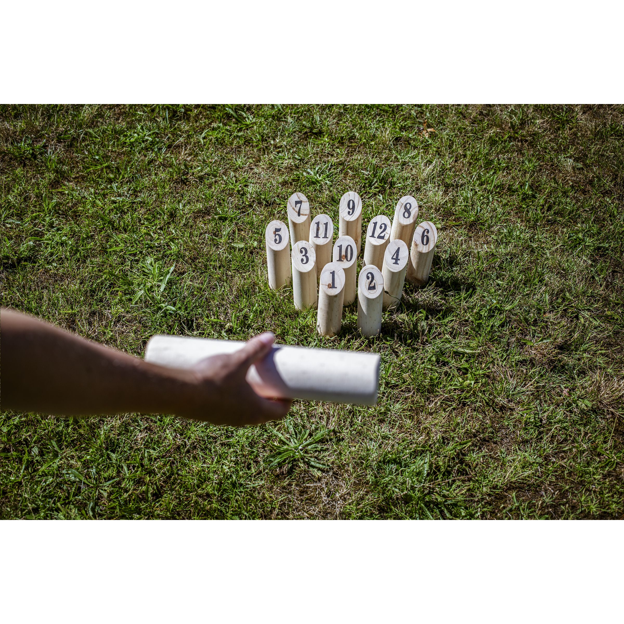Ce jeu de quilles finlandaises en bois, également connu sous le nom de Mölkky, est un jeu de plein air d’origine nordique alliant adresse, précision et stratégie. Il se joue aussi bien entre amis qu’en famille, sur la plage, en camping ou dans un jardin. Le coffret contient 13 pièces (12 quilles + 1 bâton de lancer) et est livré dans une housse en coton pratique pour le transport et le rangement.