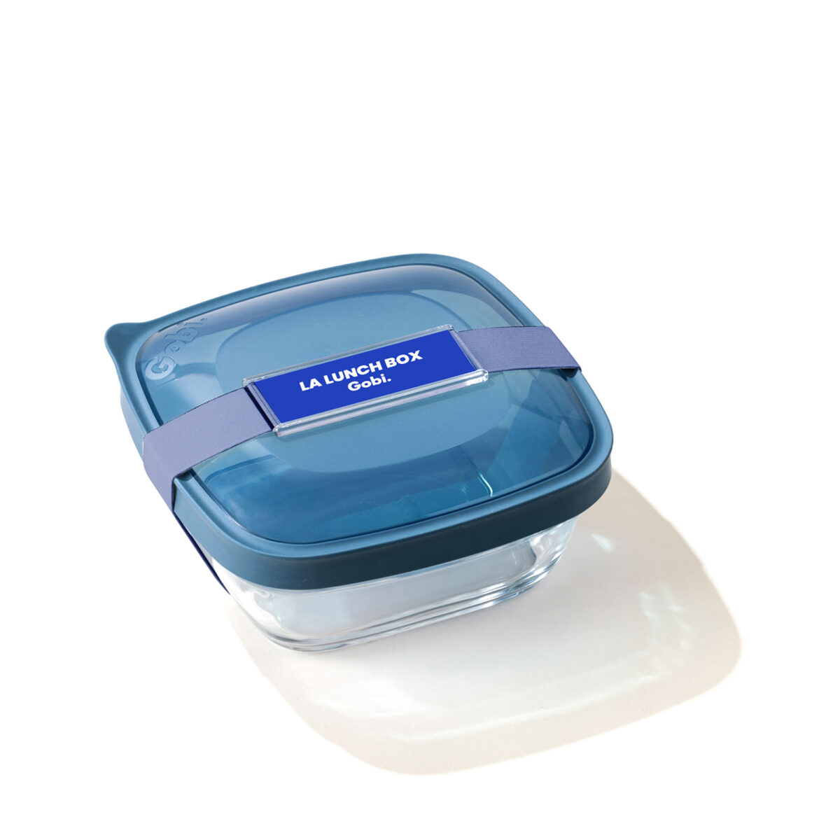 Lunch Box française en verre – 1,15L avec bol en verre trempé recyclable, couvercle en thermoplastique et sangle en polyester. Contenance 1,15 L, dimensions 17,8 x 17,8 x 7,9 cm, poids 0,583 kg. Compatible micro-ondes et lave-vaisselle. Personnalisations : étiquette numérique (2,8 x 8,5 cm), tampographie 1 couleur (2,5 x 7 cm), gravure laser avec ou sans nominatifs (4 x 4 cm).