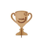 Mini trophée en hêtre naturel, épaisseur 2,5 mm, format plat 14,5 × 16,6 cm, poids léger. Personnalisable en impression numérique quadri ou en gravure laser, disponible en recto, recto/verso ou version nominative. Zone de marquage large sur la face avant. Idéal pour valoriser un événement, une remise de prix ou une action interne.