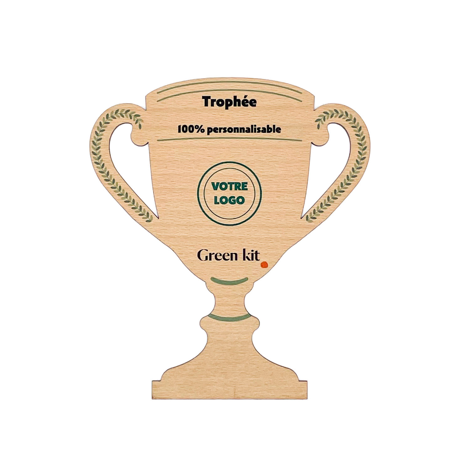 Le trophée propose plusieurs techniques de marquage permettant une adaptation à différents projets. L’impression numérique quadri assure un rendu coloré, précis et homogène, tandis que la gravure laser offre un aspect plus sobre et naturel, avec une finition nette dans les fibres du bois. Les versions nominatives permettent d’ajouter un nom, un titre ou une mention spécifique pour renforcer la valeur symbolique de l’objet.
