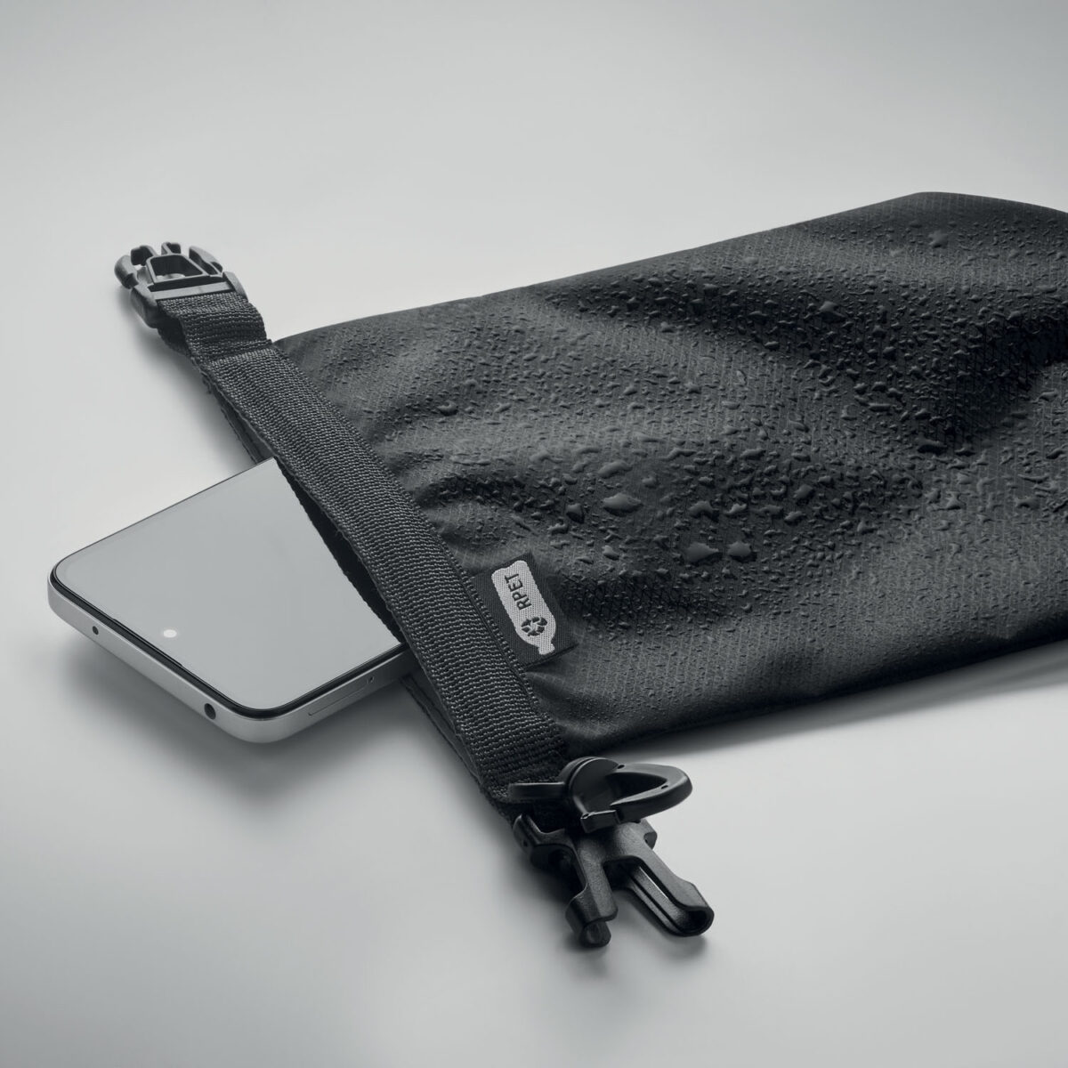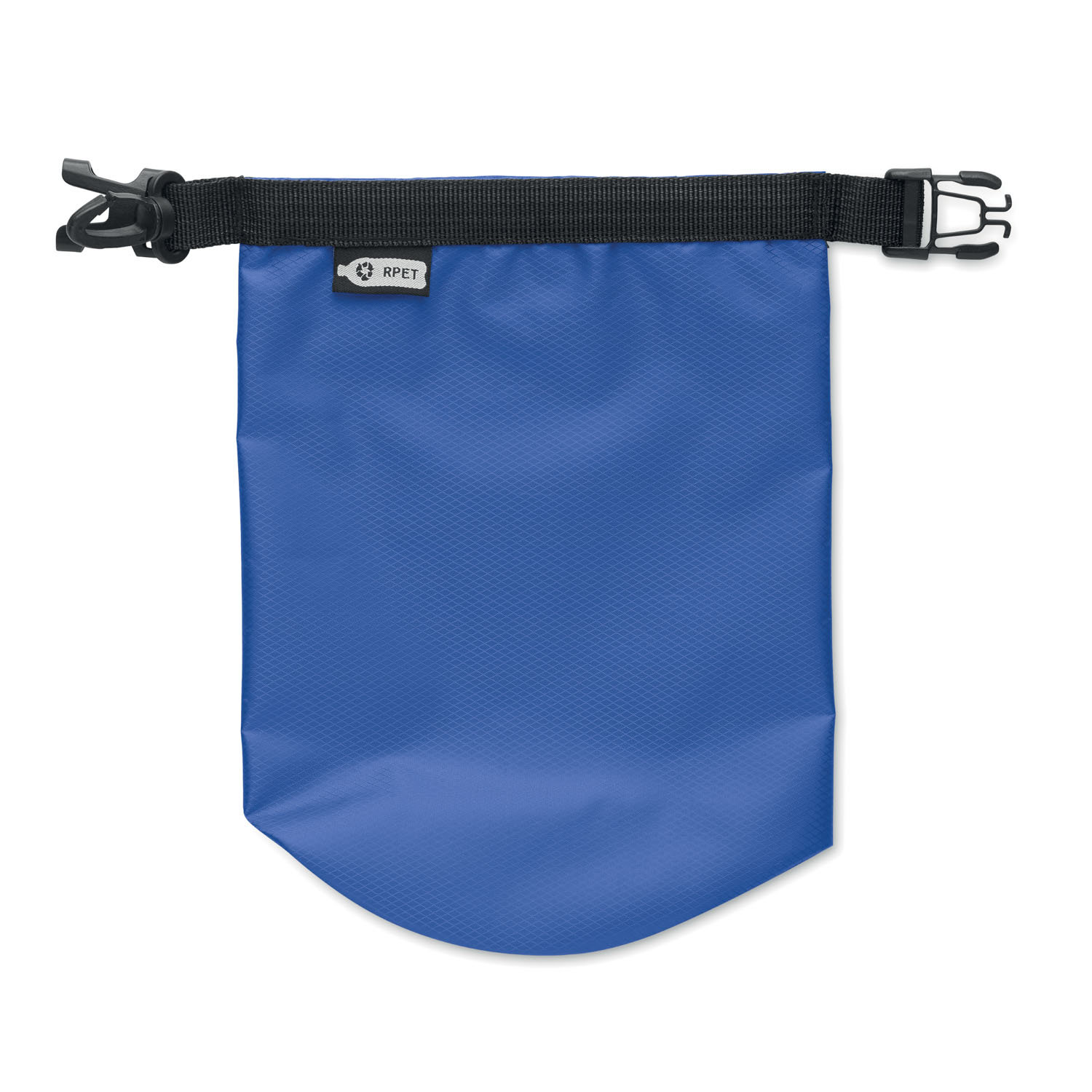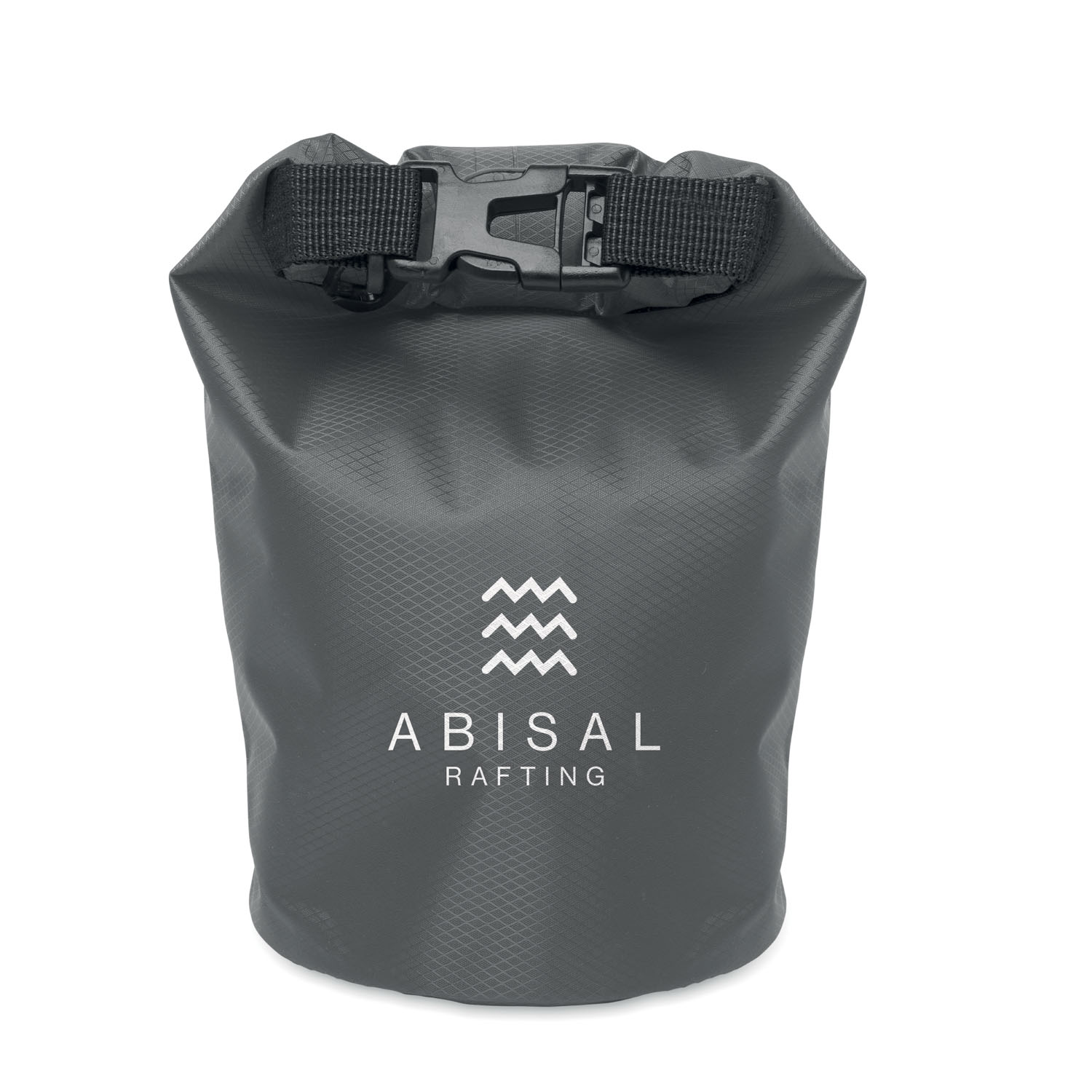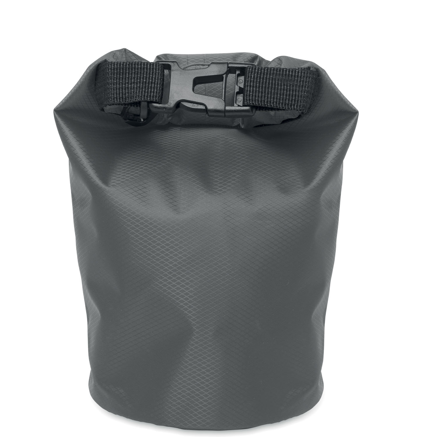 Sac étanche en RPET 210T ripstop IPX6, capacité 1,5 L, format 17,5 × 24,5 cm, poids 0,05 kg. Structure résistante et étanche, idéale pour protéger effets personnels. Personnalisation possible en sérigraphie ou transfert numérique avec zone de marquage dédiée. Disponible en plusieurs coloris.