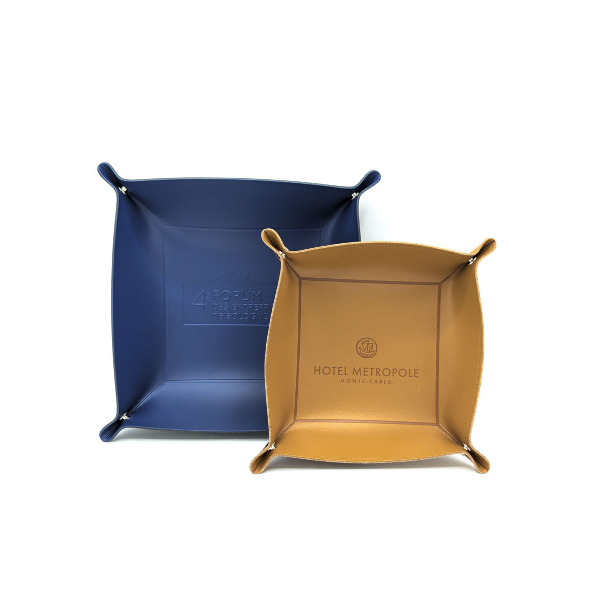 Le vide-poche en cuir recyclé est un accessoire élégant et fonctionnel pour organiser vos objets du quotidien. Disponible en deux tailles (11 x 11 cm et 13 x 13 cm), il s’adapte à différents usages : porte-clés, monnaie, bijoux ou accessoires de bureau. Conçu en cuir recyclé, il allie esthétique et engagement écologique. Il peut être personnalisé par embossage sur une zone de marquage de 100 x 100 mm. Un accessoire Made in France, alliant qualité et durabilité.